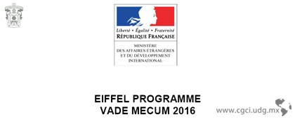 Información IMPORTANTE: Únicamente la universidad francesa puede postular al estudiante. Por lo que el candidato deberá haberse inscrito en una universidad francesa y solicitar a la misma que sea postulado. Los candidatos a nivel doctoral deberán estar tutelados tanto por la universidad de destino como por la de origen.