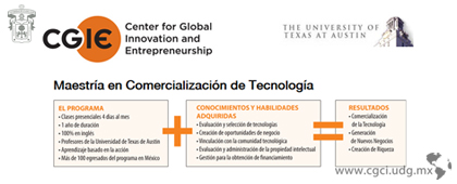Desde 2008 el Center for Global Innovation and Entrepreneurship (CGIE) ha coordinado un Certificado / Máster conjunto en comercialización de tecnología del IC² Institute y el Centro de Investigación en Materiales Avanzados (CIMAV), uno de los centros de investigación del CONACYT.