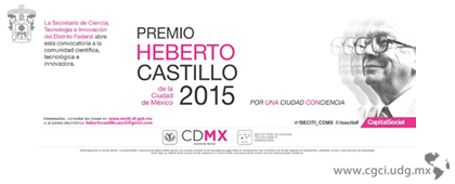 El Gobierno de la Ciudad de México, a través de la Secretaría de Ciencia, Tecnología e Innovación del Distrito Federal convoca a las instituciones de educación superior, centros de investigación, empresas, laboratorios, a la comunidad científica y tecnológica y a la sociedad en general, a participar en el "Premio Heberto Castillo de la Ciudad de México 2015, Por una Ciudad ConCiencia", que tiene el objetivo de reconocer las invaluables aportaciones realizadas por científicas y científicos mexicanos y/o extranjeros residentes en México.
