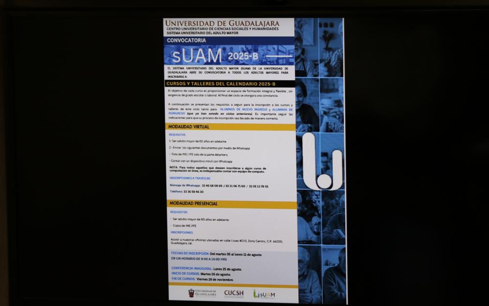 Derecho, computación, idiomas, historia, agricultura y salud mental son algunas temáticas de los cursos que ofrece, de manera completamente gratuita, el Sistema Universitario del Adulto Mayor (SUAM) de la UdeG para su calendario 2025-B.