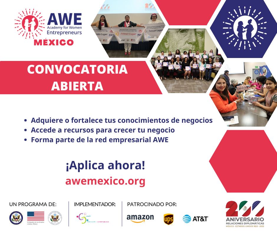 ¡Si quieres fortalecer tu negocio y hacerlo crecer, esta es tu oportunidad! Participa para obtener una beca para ingresar a la Academia de Mujeres Emprendedoras / AWE México. Requisitos: