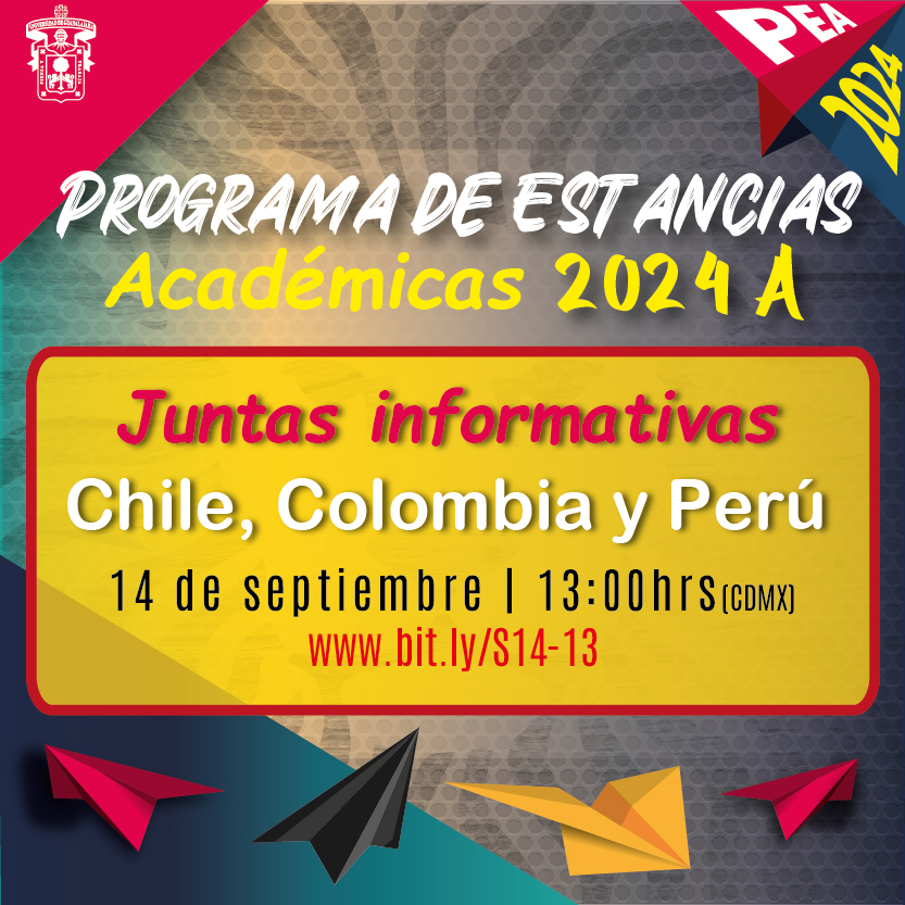 Estudiantes de licenciatura y posgrado de la Universidad de Guadalajara que deseen realizar una estancia académica en Chile, Colombia o Perú, durante el calendario 2024 A, los invitamos a asistir a esta junta informativa.