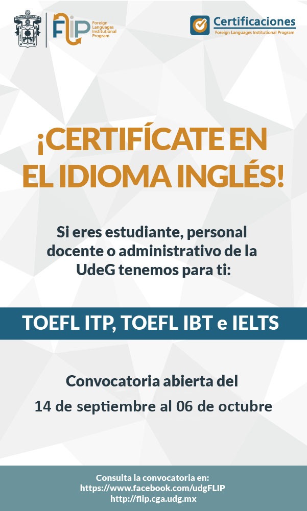 ¿Te gustaría certificarte en el idioma inglés? Si eres estudiante, administrativo o profesor/a de la Universidad de Guadalajara, aprovecha está oportunidad.