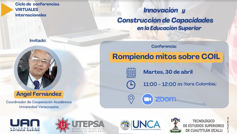 La Universidad Antonio Nariño, de Colombia, te invita a este evento virtual en el marco del Ciclo de Conferencias en Innovación y Construcción de Capacidades en la Educación Superior.