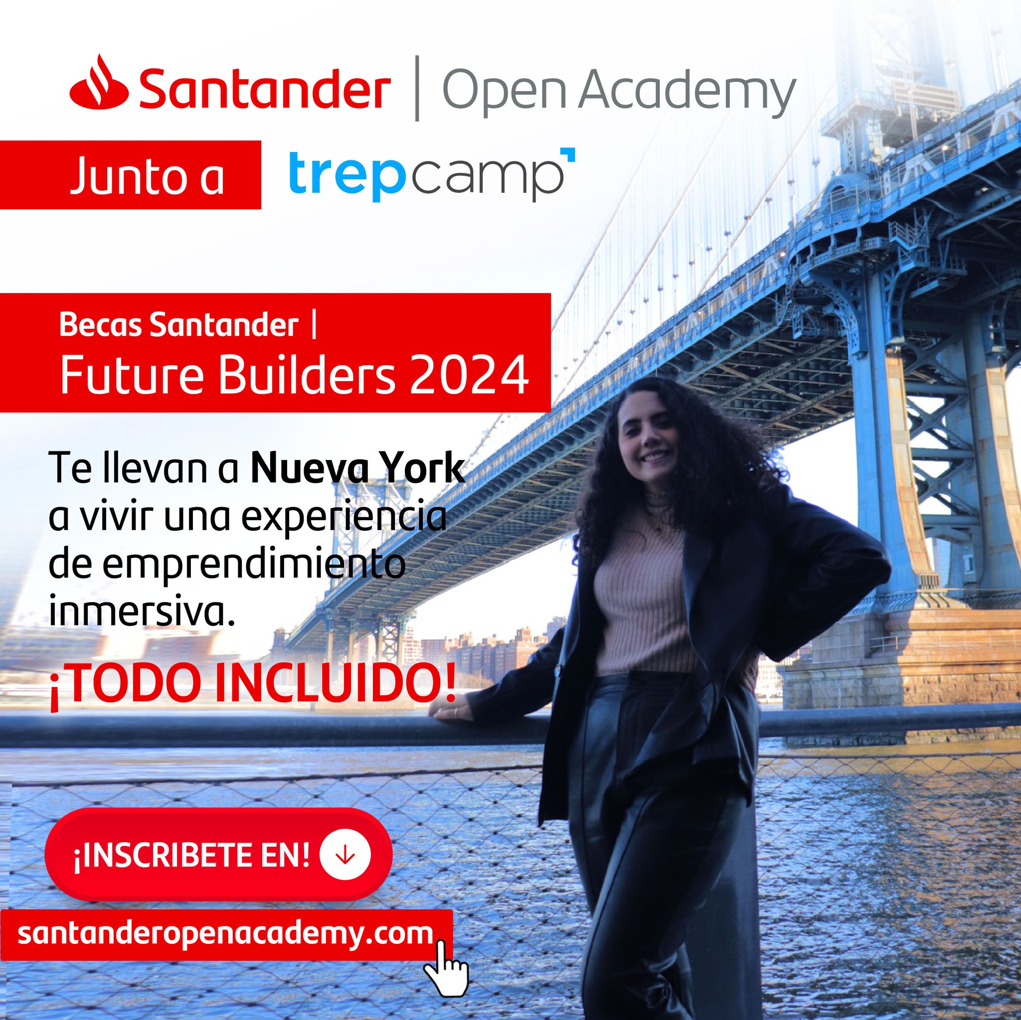 Experiencia inmersiva de 9 días y 8 noches (del 8 al 16 de julio de 2024 ) en Nueva York, con todos los gastos pagados donde podrás desarrollar tu mentalidad y competencias emprendedoras para convertirte en agente de cambio en la sociedad.