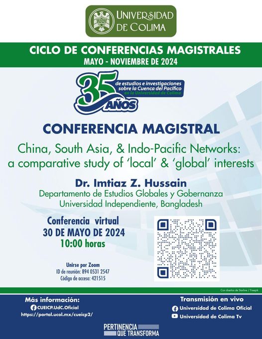 Conferencia magistral: "China, South Asia, & Indo-Pacific Networks: a comparative study of ‘local’ & ‘global’ Interests", Universidad de Colima