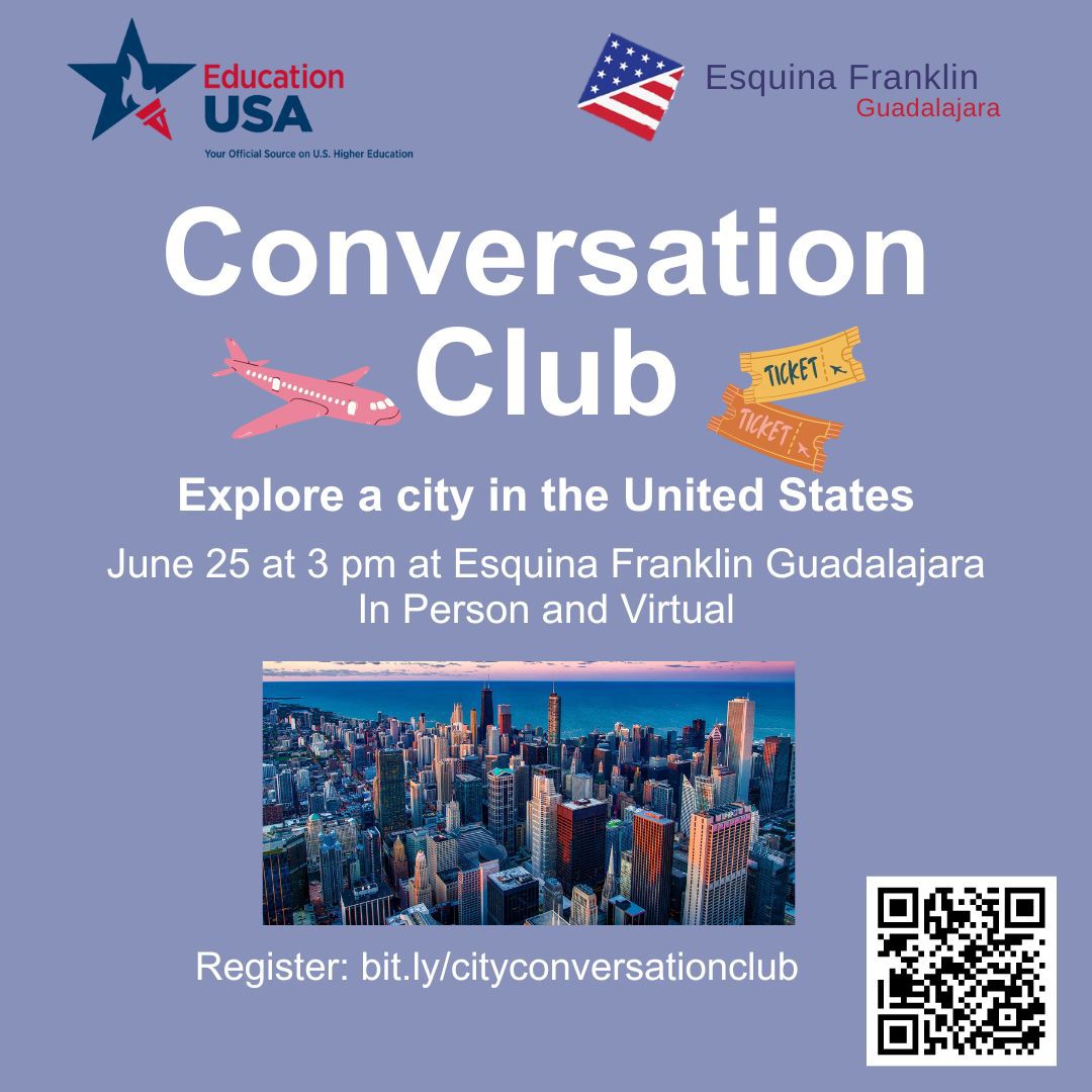 ¡Únete a este club de conversación en el que nos sumergiremos en la vibrante ciudad de Chicago! Exploraremos su historia, arquitectura icónica, diversos vecindarios y lugares famosos mientras practicamos habilidades en idioma inglés. Ven a mejorar tu fluidez y disfruta participando.