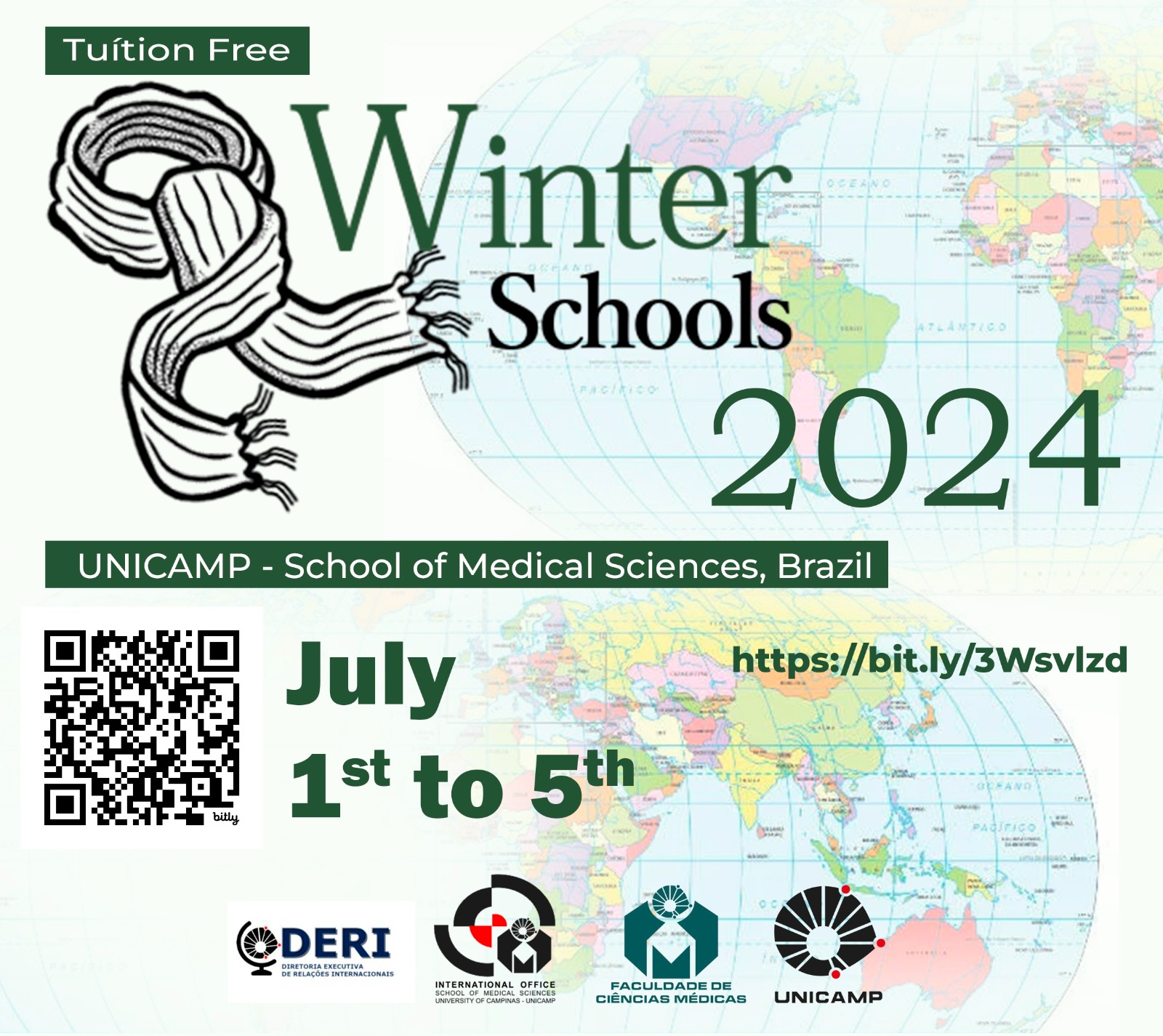 La Faculdad de Ciencias Médicas de Universidade Estadual de Campinas (Unicamp), Brasil, organiza la 5ta. edición de "Winter Schools", evento en el que se desarrollarán talleres que están destinados principalmente a estudiantes de pregrado en medicina y fonoaudiología de instituciones extranjeras, con dominio del inglés, que deseen tener una experiencia en la práctica médica y cultural brasileña con profesores de renombre y experiencia, en una de las más importantes universidades brasileñas.
