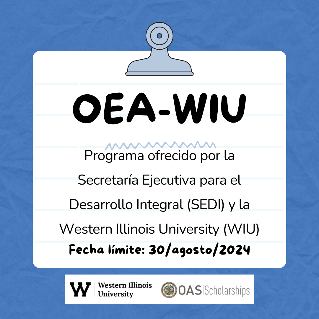 El programa OEA-WIU, ofrecido por la Secretaría Ejecutiva para el Desarrollo Integral (SEDI) y la Western Illinois University (WIU), cuenta con más de 100 programas innovadores de Licenciatura y Posgrado abierto sólo a estudiantes admitidos de los estados miembros de la OEA.