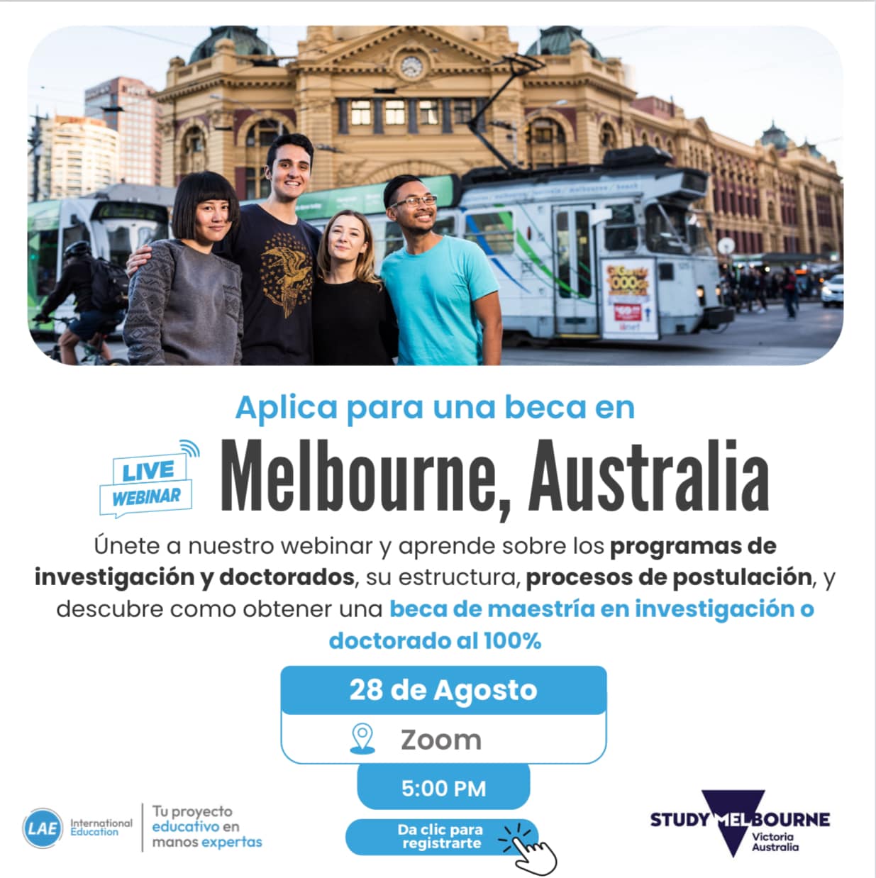 LAE International Education te invita a este evento en línea con el objetivo de conocer los programas de investigación y doctorados, su estructura, procesos de postulación, y el procedimiento sobre cómo obtener una beca de maestría en investigación o doctorado al 100% en Melbourne, Asutralia.
