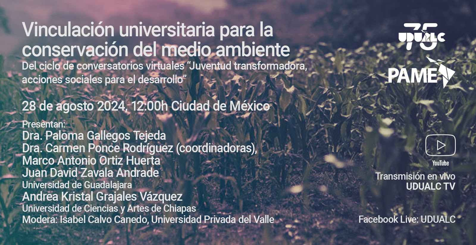 La Unión de Universidades de América Latina y el Caribe UDUALC y el Programa Académico de Movilidad Educativa PAME te invitan a este conversatorio el cual se contará con la presentación del proyecto “Establecimiento del Sistema Keyline en el Centro Universitario de Tlajomulco”, proyecto de extensión universitaria de la Universidad de Guadalajara enfocado en la captación, retención e infiltración de agua de lluvia. Este proyecto es coordinado por la Dra. Paloma Gallegos Tejeda y la Dra. Carmen Ponce Rodríguez, y cuenta con la participación de estudiantes del Centro Universitario de Tlajomulco.