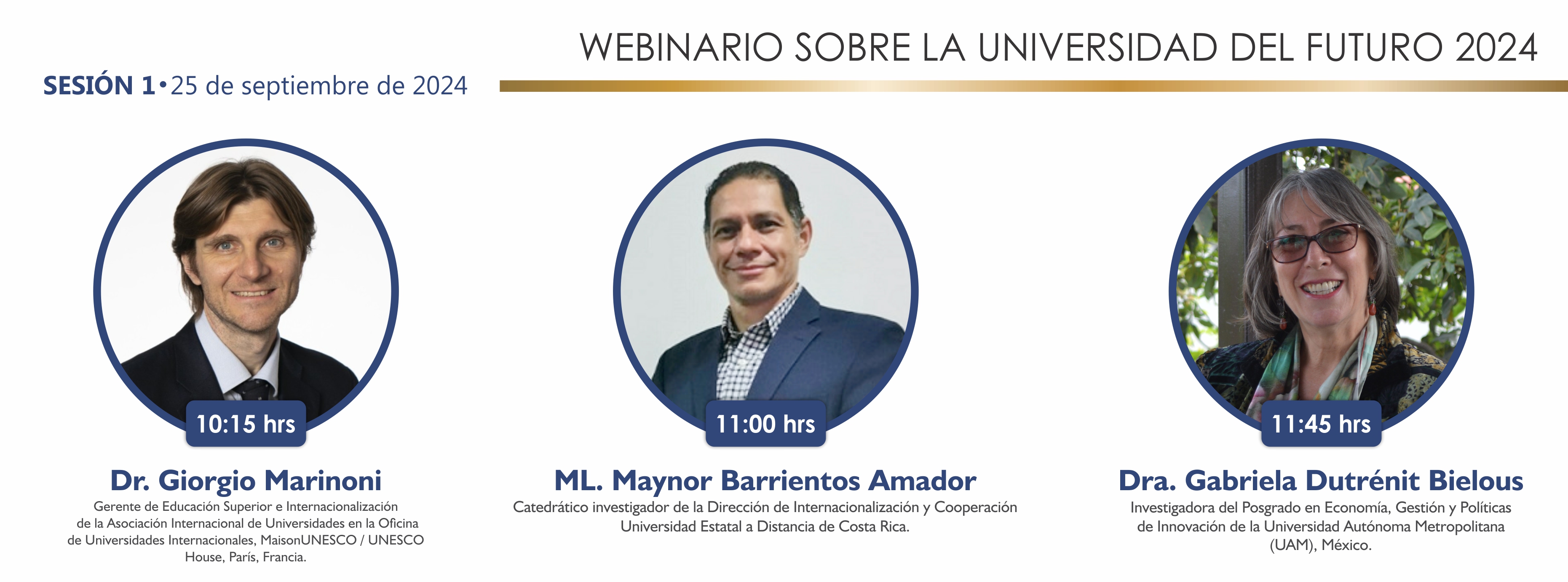 La Universidad Autónoma de Chiapas (UNACH) te invita a esta serie de webinarios cuyo objetivo es presentar las visiones de expertos internacionales sobre la “Universidad del Futuro” y su papel para asumir el compromiso y la responsabilidad ética para el futuro de una humanidad sin exclusión, mediante la producción y distribución del conocimiento, los sistemas de aprendizaje global, la formación en competencias para el futuro laboral de los estudiantes y el uso de las nuevas tecnologías.