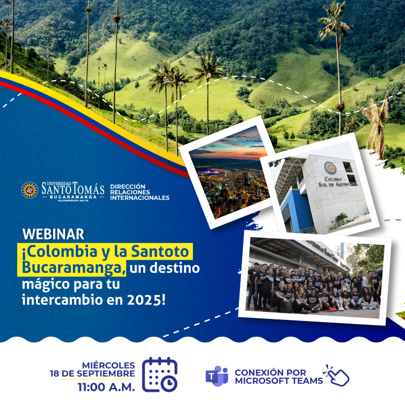La Universidad Santo Tomás, seccional Bucaramanga, te invita a este evento en línea en el que te darán un pequeño recorrido por Colombia, por Santander, por Bucaramanga y por la Santoto.