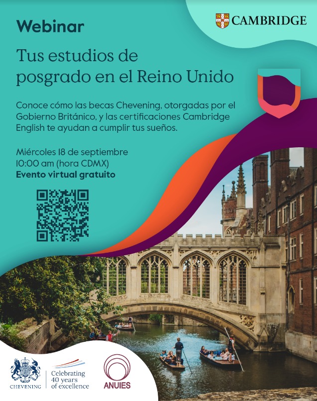 La Embajada del Reino Unido en México, Cambridge y ANUIES te invitan a una sesión donde podrás escuchar de voz de representantes de las tres organizaciones cómo el inglés tiene un papel primordial en el proceso de postulación para las becas Chevening. También se hablará sobre las certificaciones de inglés que te abrirán las puertas en la institución británica de tu preferencia. Inscríbete cuanto antes para asegurar tu lugar en este evento.