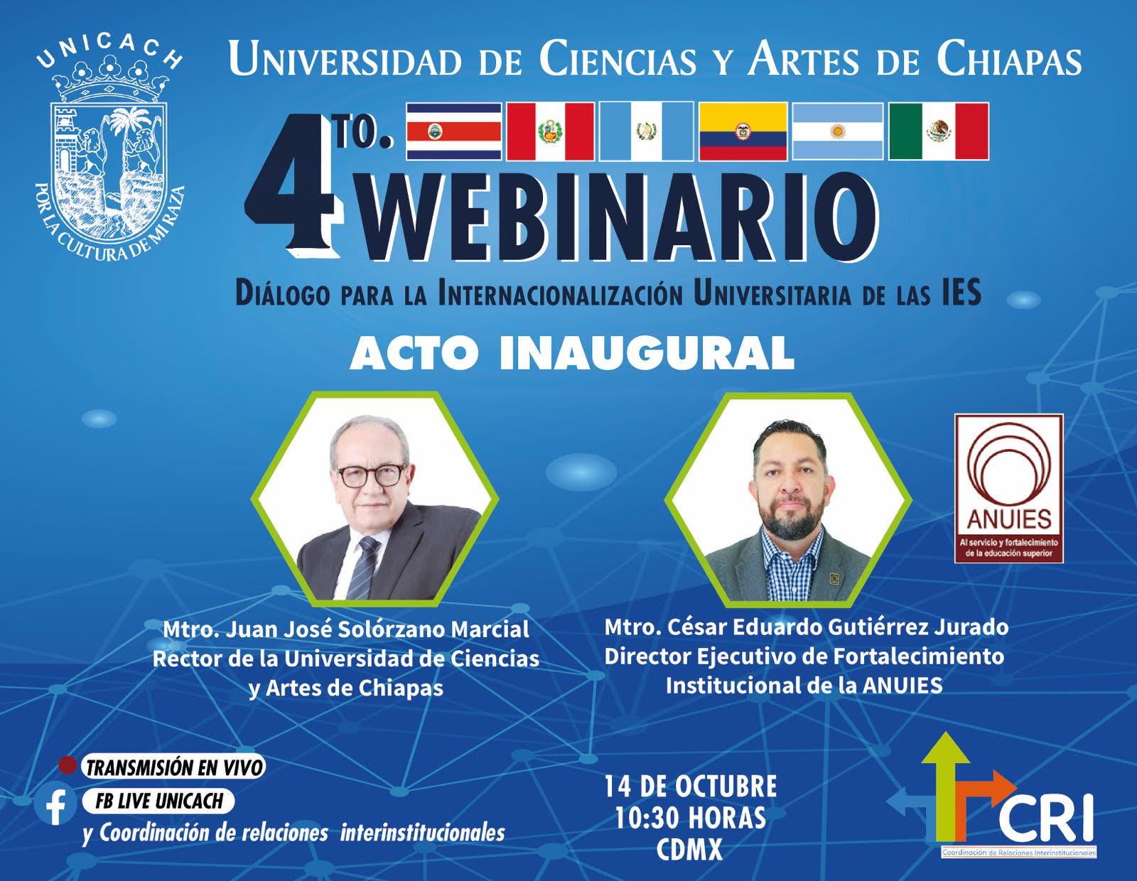 La Universidad de Ciencias y Artes de Chiapas (UNICACH) y la Asociación Nacional de Universidades e Instituciones de Educación Superior (ANUIES) te invitan a este evento en línea.