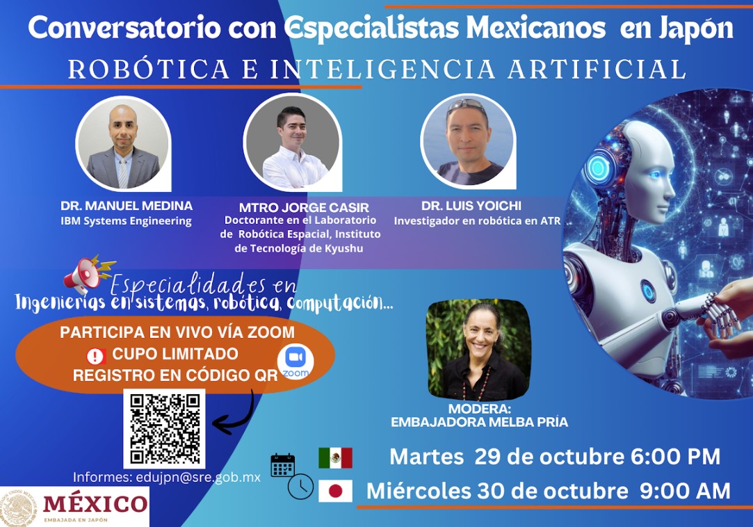 La Embajada de México en Japón te invita a esta charla que será presidida por la Embajadora Melba Pría. Podrán escuchar las historias de cómo llegaron a Japón estos tres profesionistas, y sus consejos para salir adelante en éstas y otras carreras profesionales afines.