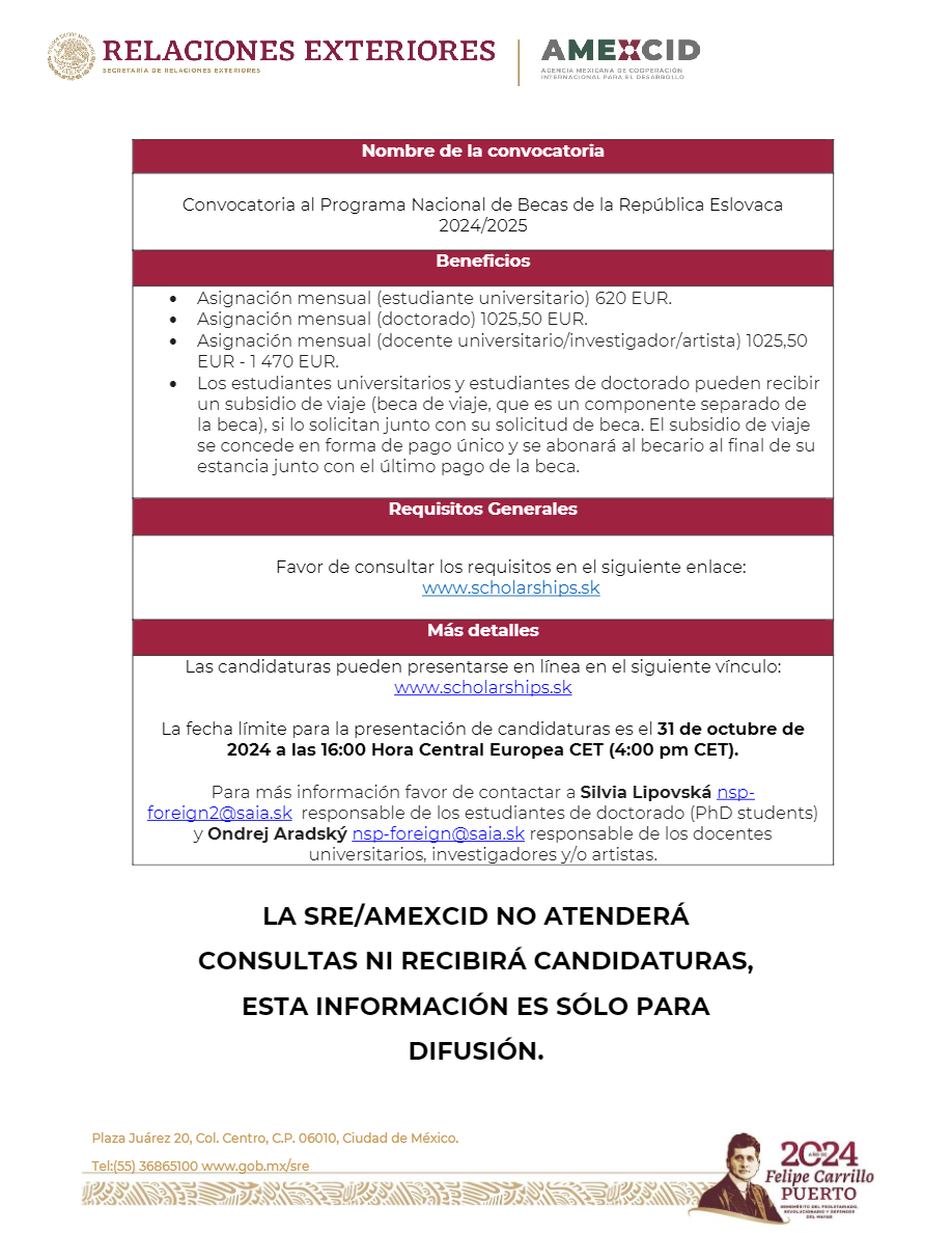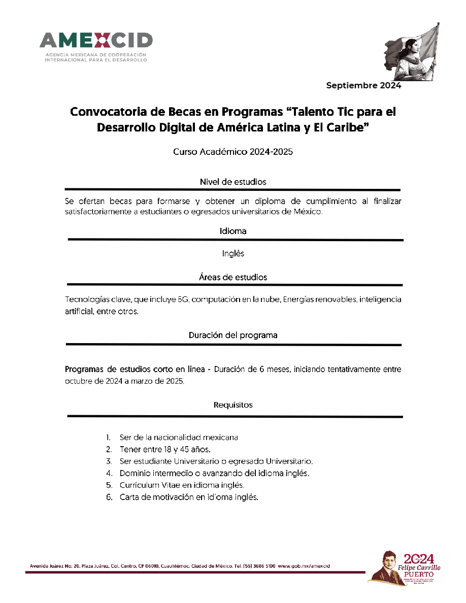 Fecha límite de postulación: 23 de octubre de 2024, 17:00 hrs (hora CDMX)