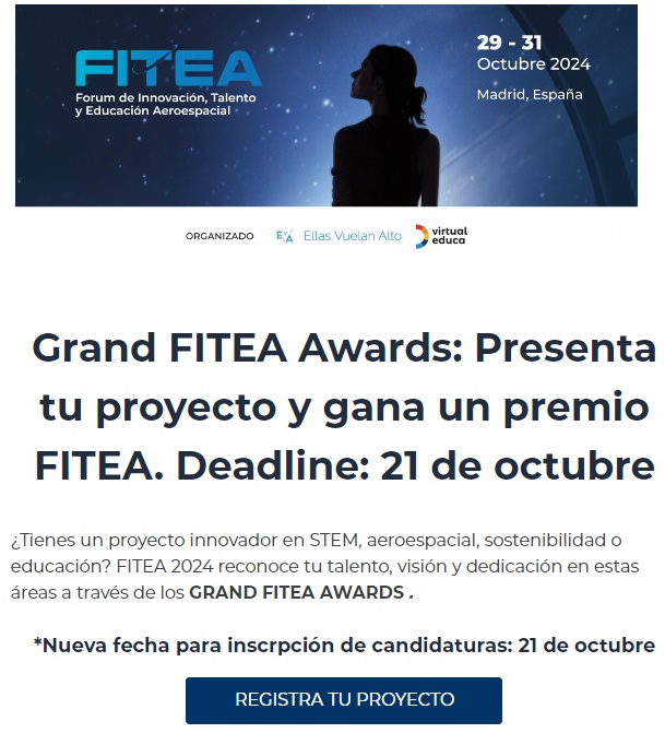 ¿Tienes un proyecto innovador en STEM, aeroespacial, sostenibilidad o educación? Los Grand FITEA Awards reconocen el talento, la visión y la dedicación en estas áreas clave. Registra tu proyecto.