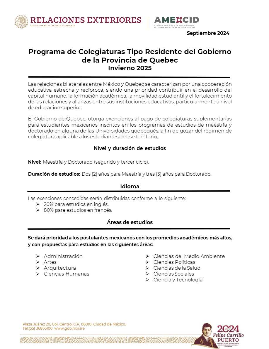 Periodo de registro: del 04 de octubre al 07 de noviembre de 2024