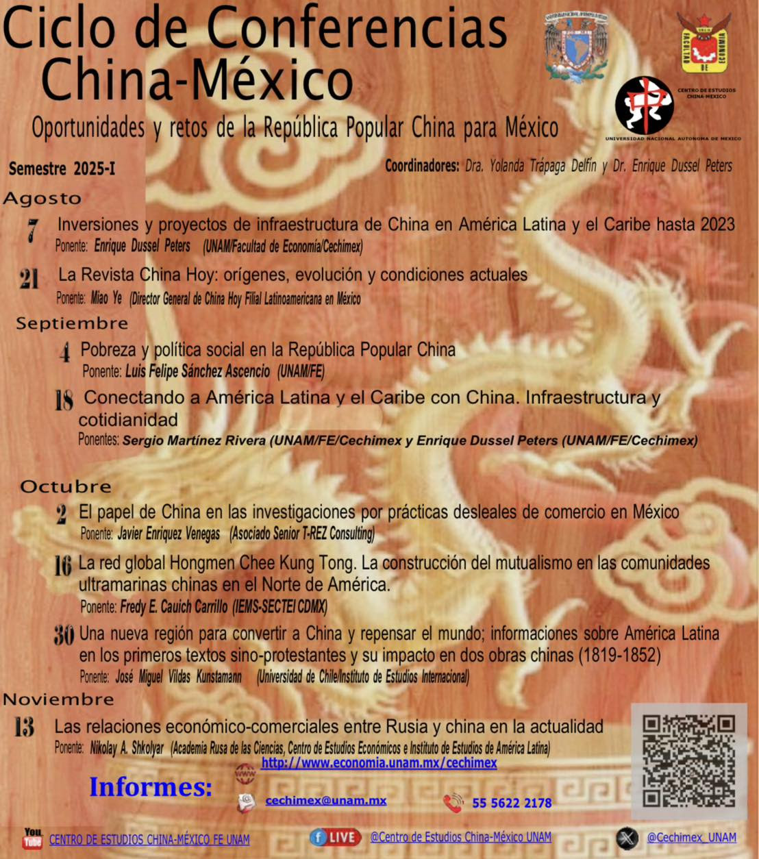 La Red América Latina y el Caribe sobre China invita a su ciclo de Conferencias China-México “Oportunidades y retos de la República Popular China para México” impartida por NIKOLAY A. SHKOLYAR el miércoles 13 de noviembre a las 10am.
