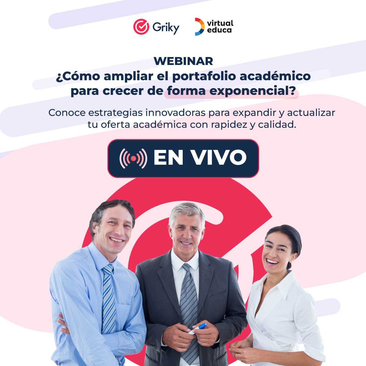 ¿Buscas hacer crecer tu oferta académica y destacar en el mundo educativo? En este webinar organizado por Griky, descubrirás estrategias innovadoras para expandir y actualizar tu portafolio académico con rapidez y calidad.