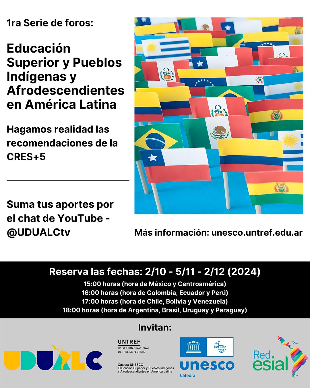 La UDUALC te invita a participar en estos encuentros donde se explorará cómo implementar las recomendaciones de la CRES+5 sobre Educación Superior, Diversidad Cultural e Interculturalidad. Con presentaciones de estudiantes, docentes, autoridades universitarias y referentes de pueblos indígenas y afrodescendientes.