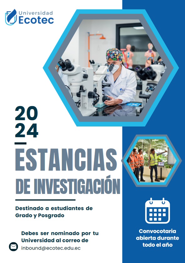 La convocatoria de estancias de investigación en la Universidad Ecotec, de Ecuador, estará abierta durante todo el año. Los estudiantes pueden postular para realizar una estancia de 3 a 8 meses.