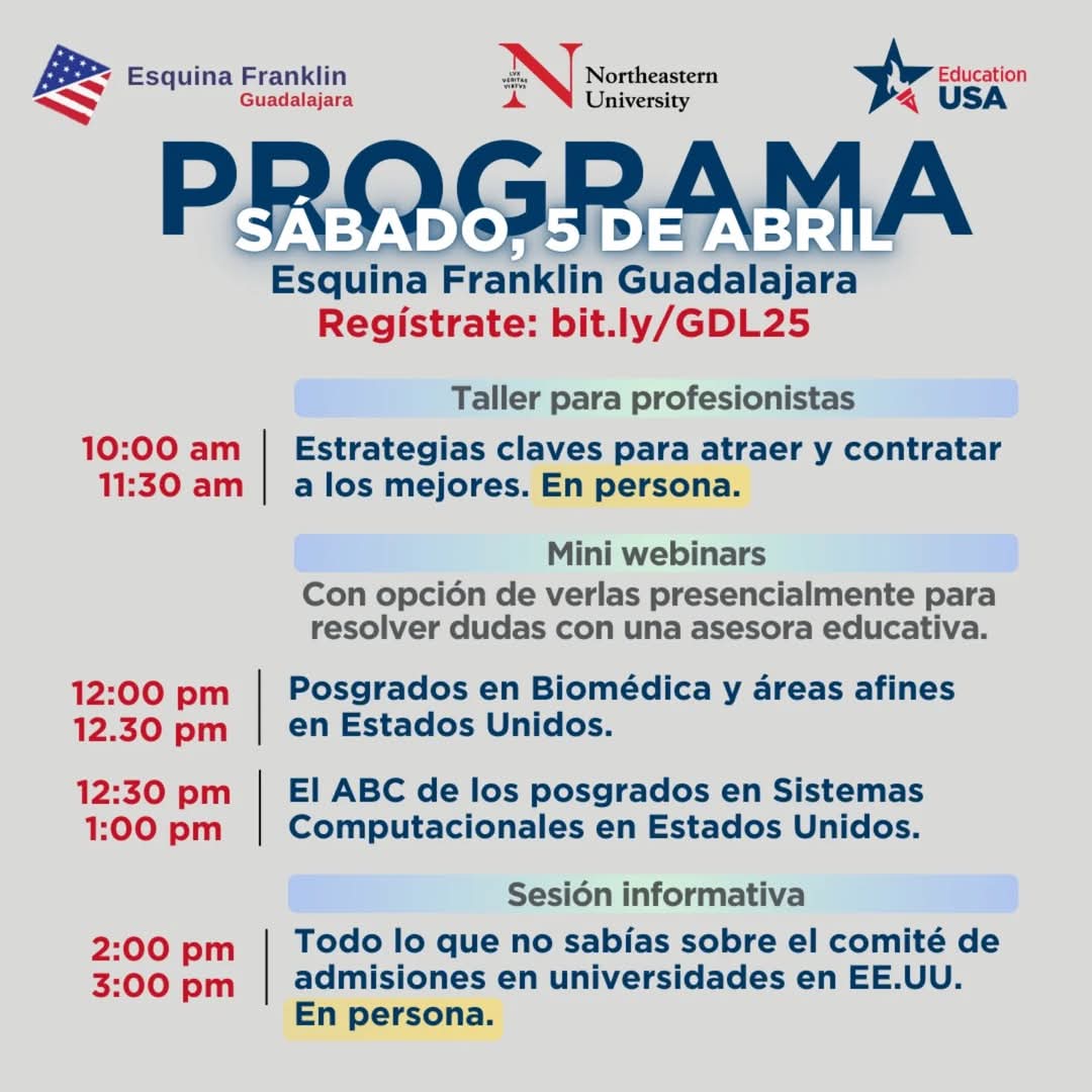 EducationUSA te invita a participar en sus sesiones informativas de manera presencial.