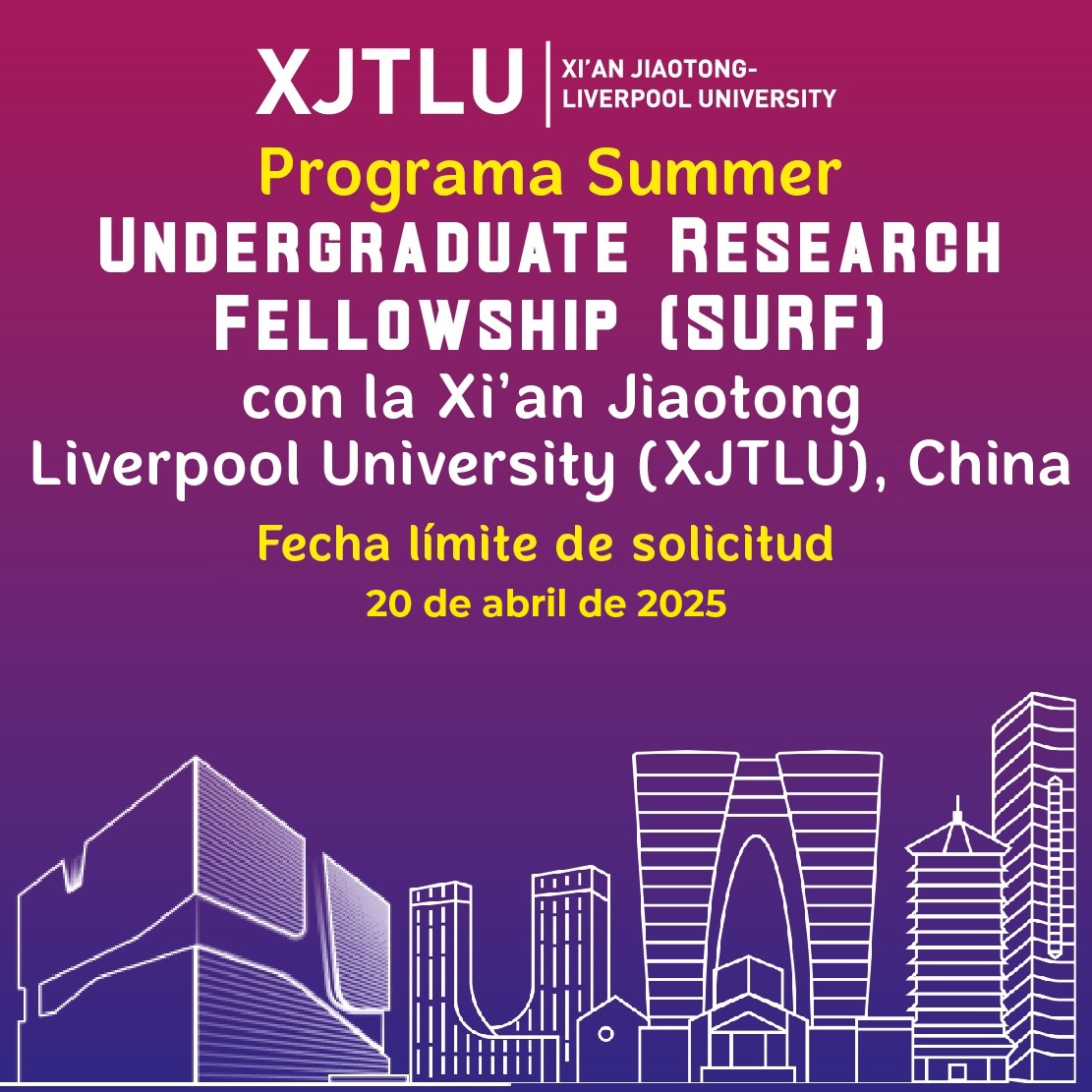 Pueden postularse estudiantes de licenciatura que se encuentren en la etapa 1, 2 o 3 de sus estudios y que pertenezcan a universidades asociadas a XJTLU (confirmadas por X-Global).
