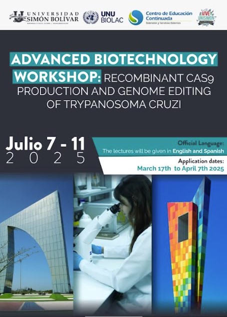 Este curso brinda una formación teórico-práctica de alto nivel en biotecnología, enfocándose en la producción de Cas9 recombinante y la edición genómica mediante CRISPR-Cas9 en Trypanosoma cruzi y es cofinanciado por el UNU-BIOLAC. El Programa de Biotecnología de la Universidad de las Naciones Unidas para América Latina y el Caribe (UNU-BIOLAC) es una institución independiente y no gubernamental dedicada a promover la biotecnología como fuente de soluciones para el desarrollo y la paz mediante actividades académicas en la región.