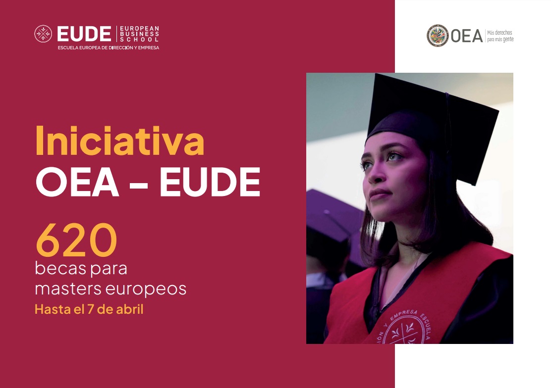 El programa OEA-EUDE 2025, ofrecido por la Secretaría General de la Organización de los Estados Americanos (SG/OEA) y la Escuela Europea de Dirección y Empresa (EUDE). Este programa brinda a los ciudadanos de los Estados Miembros de la OEA la oportunidad de cursar Maestrías en la EUDE. Los programas de maestrías se impartirán en la modalidad a distancia y presencial (España) en idioma español y con una duración de 12 meses.