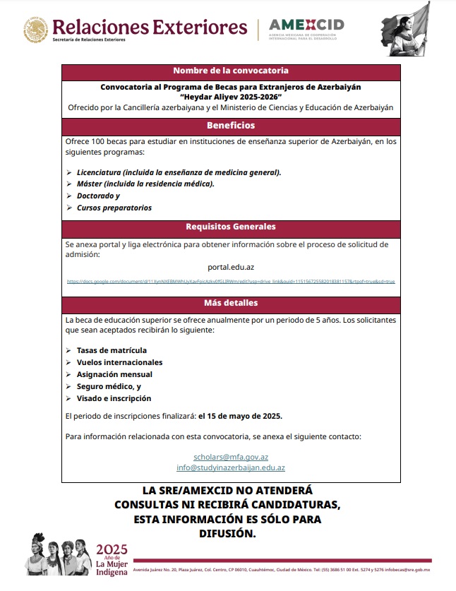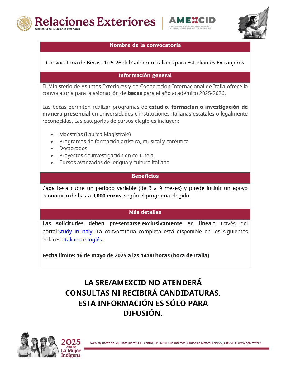 Fecha límite de postulación (SE AMPLIÓ): 12 de mayo de 2025, 23.59 hrs (hora CDMX)