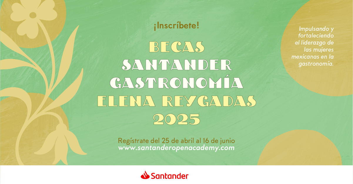 ¡Impulsa tu talento culinario con las Becas Santander Gastronomía - Elena Reygadas 2025! Banco Santander, en alianza con la reconocida Chef Elena Reygadas, lanza la nueva edición del programa de Becas Santander Gastronomía 2025, una iniciativa que busca fortalecer el liderazgo de las mujeres mexicanas en el ámbito gastronómico.