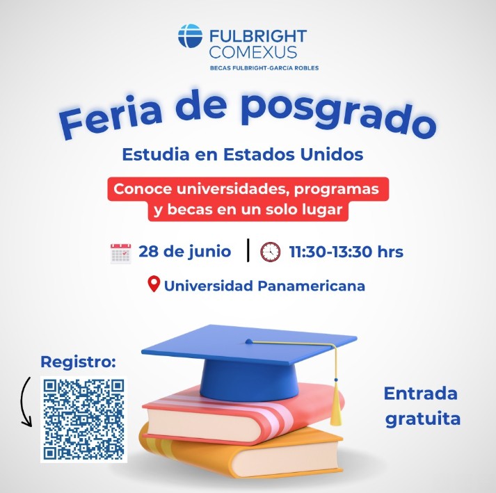 La Universidad Panamericana y Fulbright-COMEXUS te invitan a esta feria abierta al público en general y de acceso gratuito. Conoce información única para estudiar una maestría o doctorado en Estados Unidos.