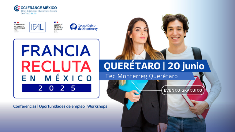 Más información: www.franciamexico.com/es/eventos/proximos-eventos/e/event/francia-recluta-en-mexico-segunda-edicion-en-queretaro.html