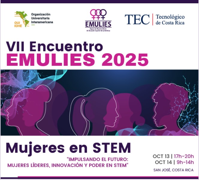 El Tecnológico de Costa Rica te invita al VII Encuentro del Espacio de Mujeres Líderes de Instituciones de educación superior (EMULIES) de la Organización Universitaria Interamericana (OUI), que reunirá a los equipos de mujeres de alta dirección de las Instituciones de Educación Superior (IES) para discutir e intercambiar sobre Mujeres en STEM.