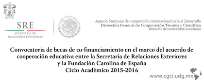 Becas de co-financiamiento en el marco del acuerdo de cooperación educativa entre la Secretaría de Relaciones Exteriores y la Fundación Carolina de España 2015-2016
