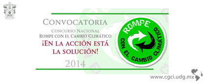 La Secretaría de Medio Ambiente y Recursos Naturales, por conducto del Centro de Educación y Capacitación para el Desarrollo Sustentable, y el Consejo Consultivo para el Desarrollo Sustentable, el Instituto Nacional de Ecología y Cambio Climático, la Comisión Nacional del Agua y la Comisión Nacional de Áreas Naturales Protegidas, convocan al Concurso Nacional Rompe con el Cambio Climático.