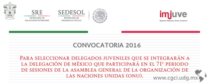 Es recomendable que las/los jóvenes seleccionadas/os para la entrevista tengan conocimientos de la agenda de Naciones Unidas. Para obtener mayor información al respecto, favor de visitar sitio web de los Delegados Juveniles ONU