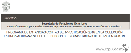 - Manifestar por escrito su disposición de pasar de una a dos semanas en la Universidad de Texas en Austin, con el fin de elaborar un trabajo de investigación en los fondos bibliográficos, hemerográficos y documentales de la Colección Latinoamericana Nettie Lee Benson.