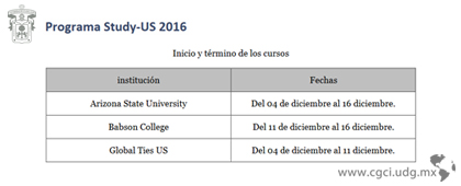 - Se otorgarán becas a estudiantes de la Universidad de Guadalajara para realizar estancias en las siguientes Instituciones de Educación Superior (IES) de Estados Unidos de América: