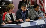 El Rector General de esta Casa de Estudio, maestro Itzcóatl Tonatiuh Bravo Padilla; la Embajadora de Estados Unidos en México, Roberta S. Jacobson y Tanya C. Anderson, Cónsul General de Estados Unidos en Guadalajara, firmaron el memorándum de entendimiento esta mañana.