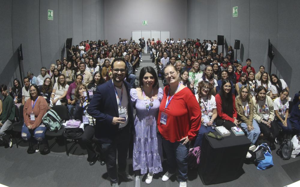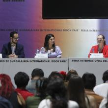 Jóvenes interesados en la lectura abarrotaron el Salón de Profesionales de Expo Guadalajara, en la 38 Feria Internacional del Libro de Guadalajara (FIL), para ser parte del Encuentro Nacional de Creadores Literarios, con la charla “Tu voz, tu historia: cómo publicar tu propio audiolibro”.