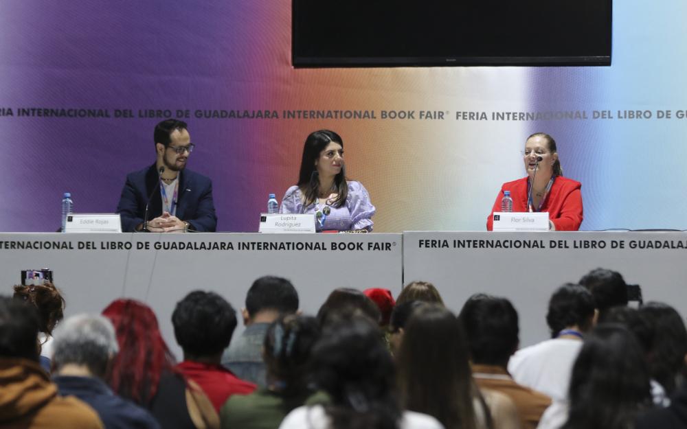 En la actualidad la literatura es consumida en multiplataformas. El libro, aunque sigue vigente, ha dejado de ser la única opción para leer; los eBooks, audiolibros, audioseries y videos forman parte del cotidiano de las y los jóvenes para acercarse a las letras; por ello, Flor Silva y Eddie Rojas compartieron las formas en que se publican y forman audiolibros.