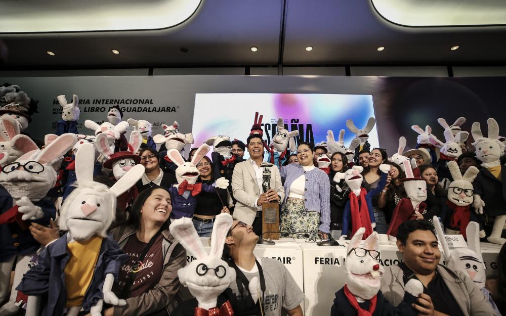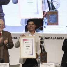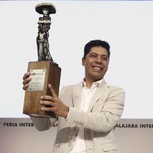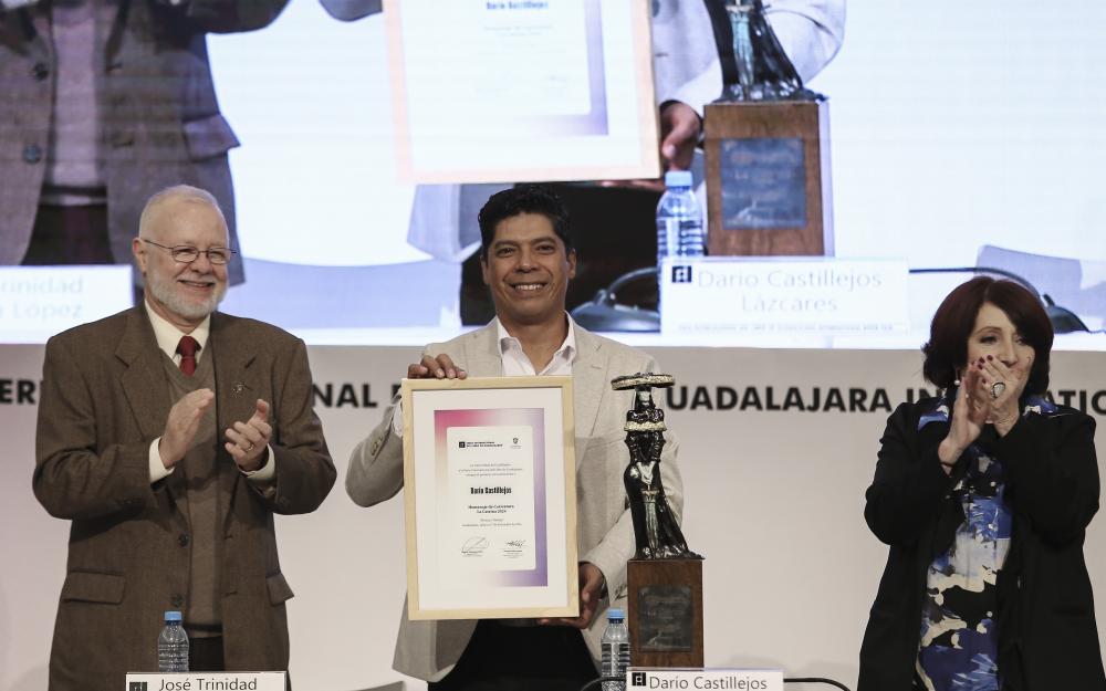Entre aplausos, Castillejos recibió “La Catrina”, una escultura de bronce que reproduce un dibujo de Sergio Aragonés (libre versión de la célebre Catrina creada originalmente por José Guadalupe Posada), además de un reconocimiento, el cual le fue entregado por el Presidente de la FIL, maestro José Trinidad Padilla López.