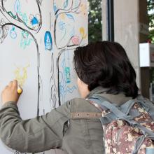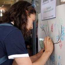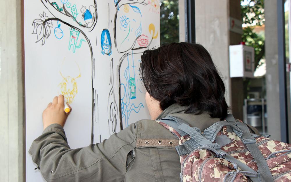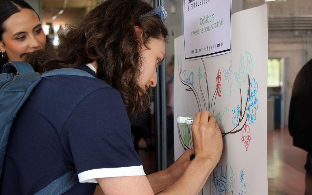 Diego Cervantes, estudiante de cuarto semestre de la licenciatura en Diseño para la Comunicación Gráfica, realizó una interpretación del “Árbol y yo”, uno de los temas de la bienal. Consideró que su trabajo muestra una conexión entre los nervios y la columna vertebral, así como un vínculo entre el árbol, sus raíces y la tierra.