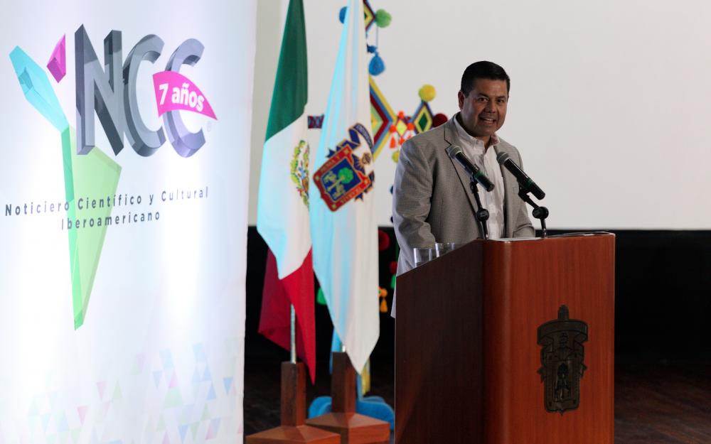 A la par del Encuentro Internacional de Medios Públicos, con sede en Puerto Vallarta y Nayarit, se conmemoró el séptimo aniversario del Noticiero Científico y Cultural Iberoamericano (NCC), en el auditorio Juan Luis Cifuentes Lemus, del Centro Universitario de la Costa (CUCosta) de la UdeG.