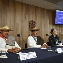 A la rueda de prensa asistieron la artesana Feliciana Flores Vázquez, Vicepresidenta de la Unión de Comunidades Indígenas Nahuas de Tuxpan y Abraham Isabeles León, Presidente de Artesanos Indígenas del Pueblo Nahua de Tuxpan.
