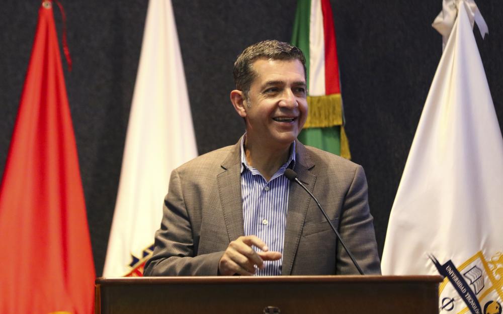 A la ceremonia de premiación se sumó el Rector del Centro Universitario de Ciencias Económico Administrativas (CUCEA), maestro Luis Gustavo Padilla Montes, quien invitó a las y los estudiantes a continuar con ideas, crear y seguir buscando resolución a las problemáticas que aquejan al mundo.