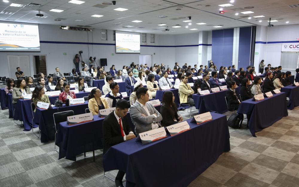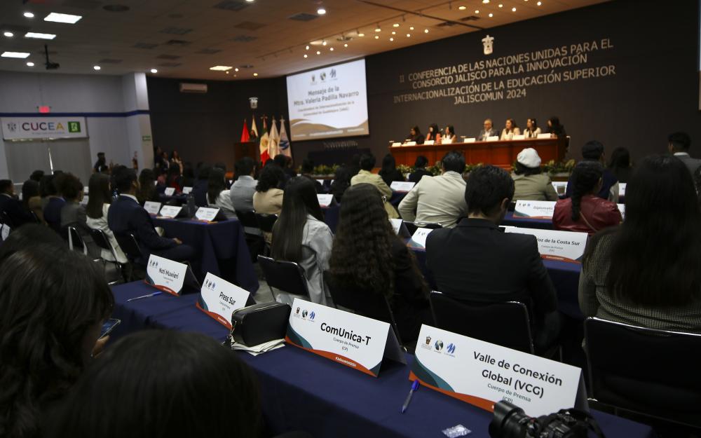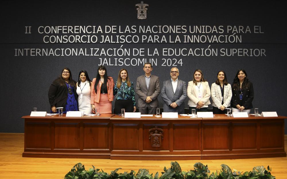 Tras tres días de trabajo de preparación, estudiantes de licenciatura de la Universidad de Guadalajara (UdeG), Universidad de Guanajuato (UG) y la Universidad Autónoma de Guadalajara (UAG), sesionaron en un ejercicio de asamblea para simular el trabajo realizado por las Naciones Unidas en la II Conferencia Modelo de las Naciones Unidas para el Consorcio Jalisco para la Innovación e Internacionalización de la Educación Superior (JALISCOMUN2024).